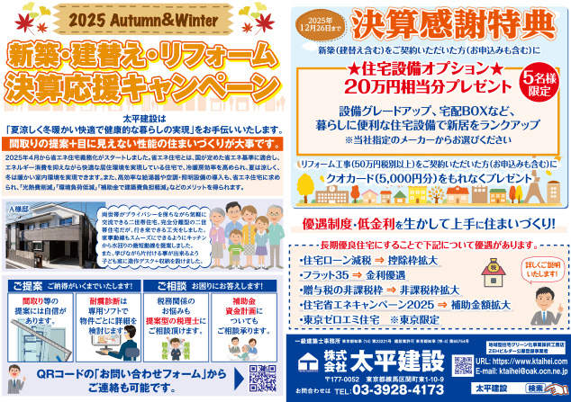 参加のお申し込みは⇒ 株式会社 太 平 建 設 TEL:03-3928-4173 または ktaihei@oak.ocn.ne.jp までお願いいたします。