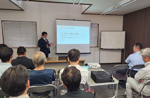 9/18 弊社会議室において令和7年度の安全大会を開催しました。 今回は技術技能講習センター株式会社 浅沼様を講師に「見えない利益―安心が育てる現場のちから」をテーマに安全講和をして頂きました。 人手不足により建築現場もAI化が進んでいますが、やはり、ひとりひとりの「安全意識・行動」が重要な要素であることは間違いありません。改めて協力会の皆様と安全意識を確認する貴重な時間となりました。